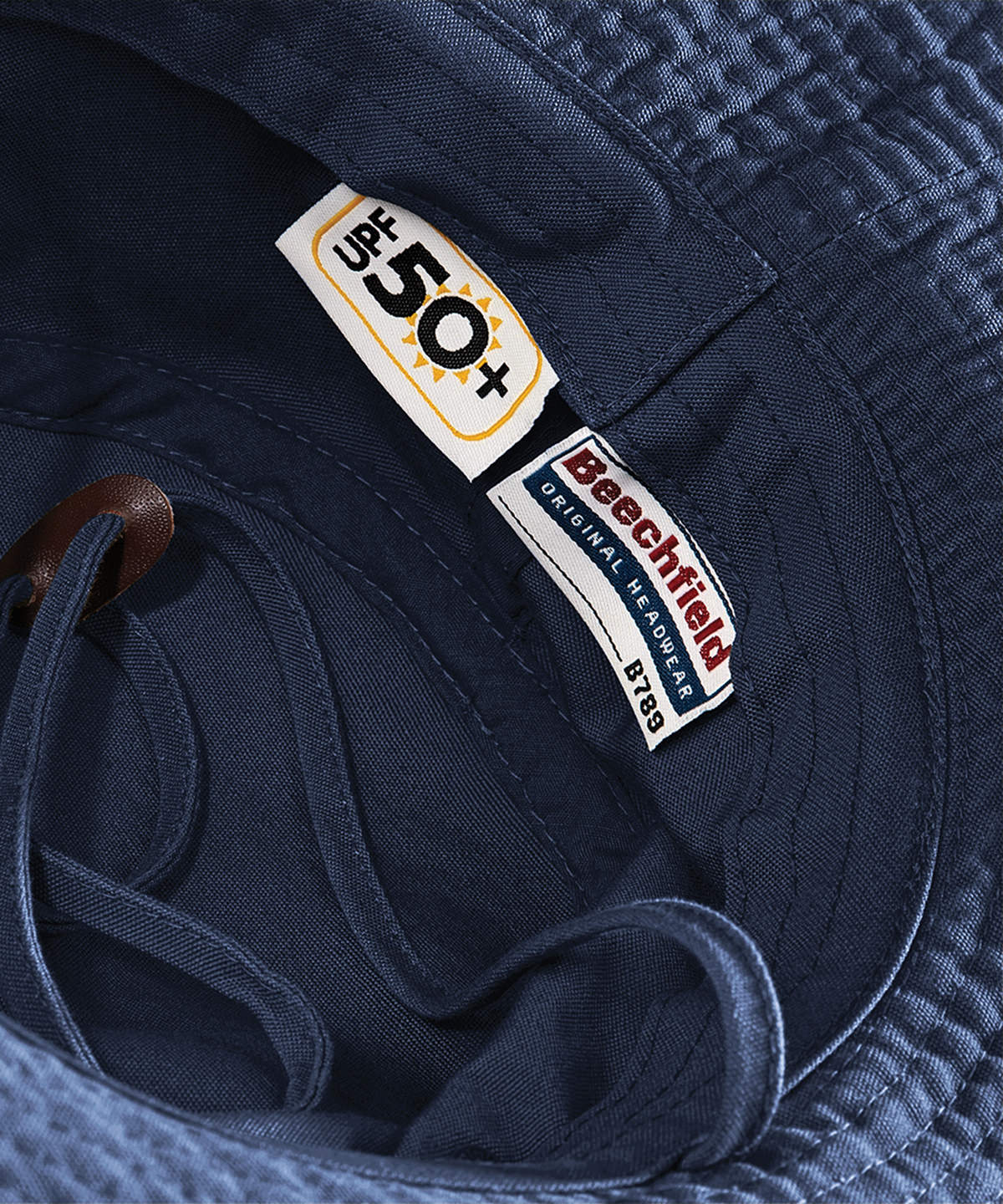 - Chin strap with leather toggle