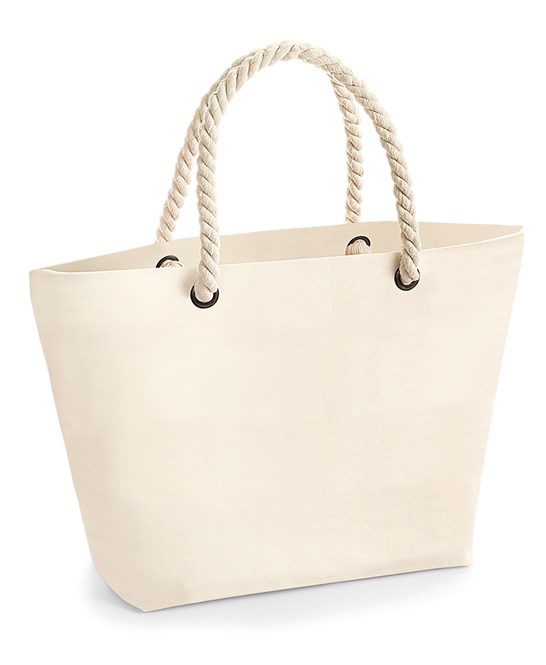 - Printed stripe design. Durable canvas construction. Heavyweight rope carry handles. Can be used in the hand or over the shoulder. Handle length: 60cm.